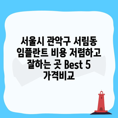 서울시 관악구 서림동에는 다양한 치과가 있습니다. 가격과 서비스를 비교하여 최적의 선택을 할 수 있습니다. 임플란트 시술은 비용이 중요한 요소이므로, 여러 치과의 가격을 직접 확인하는 것이 좋습니다.